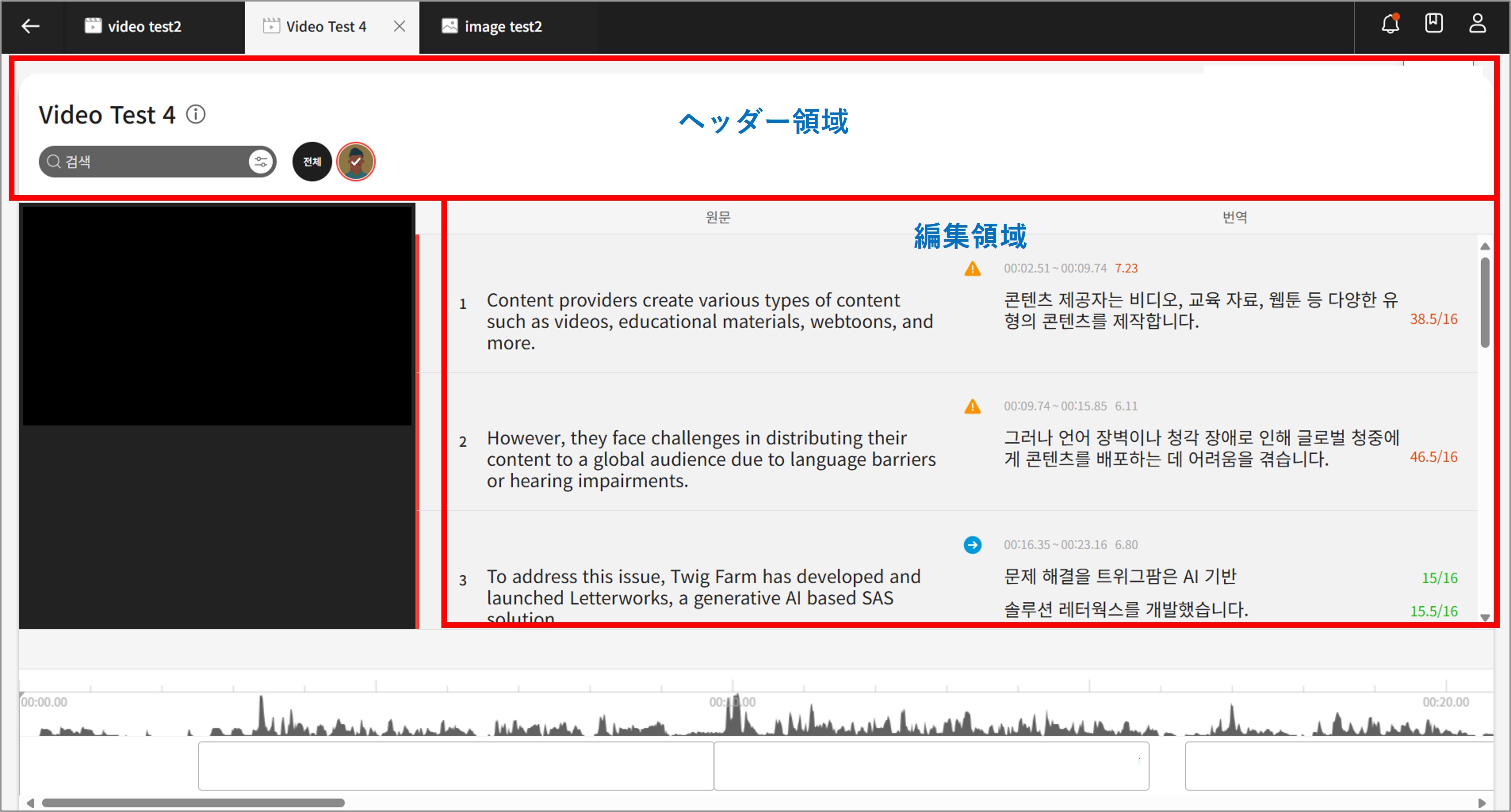 また、画面をより広くご活用いただけるよう、編集画面と非編集画面のサイズを調整し、各構成要素をすっきりと再配置いたしました。この変更は、映像、画像、テキストプロジェクトの全編集画面に適用されます。