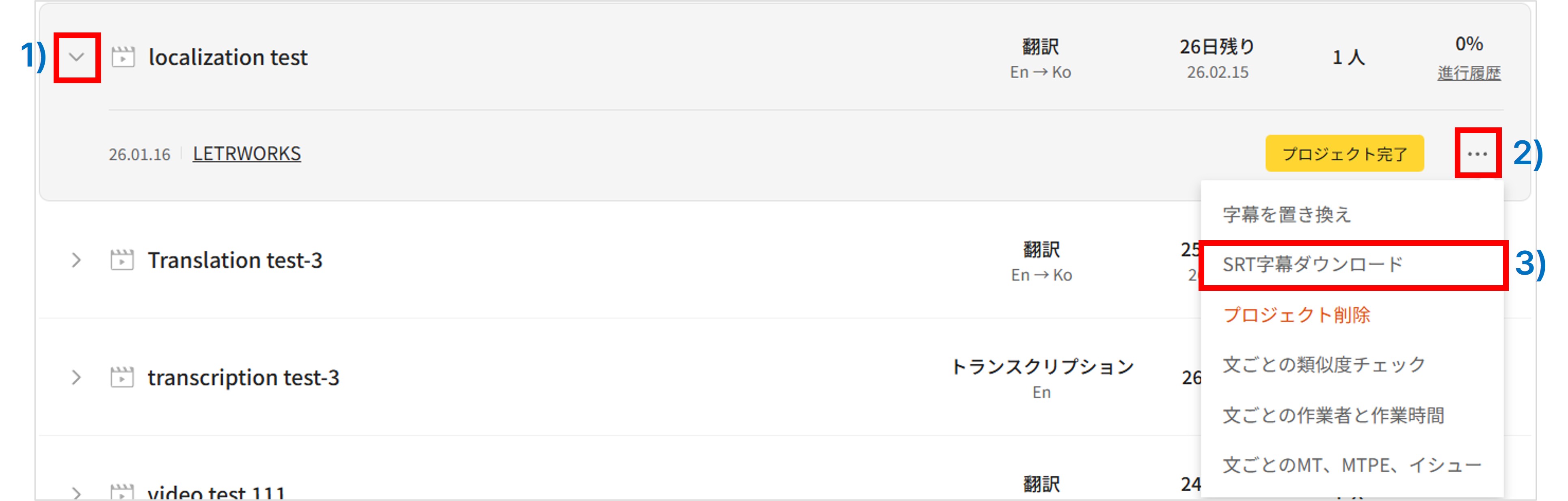これまではプロジェクトが最終完了した後にのみ字幕の受け取りが可能であったため、ご不便をおかけしておりました. 今回のアップデートにより、プロジェクトが「進行中」の状態でも、いつでも字幕をダウンロードできるよう機能を改善いたしました.