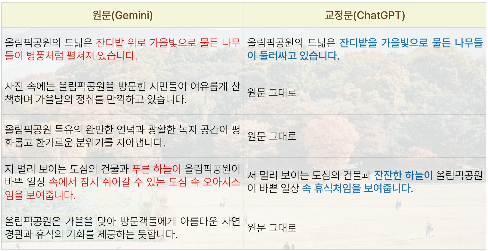 마찬가지로 챗지피티도 제미나이가 생성한 문장을 교정해 주었습니다.