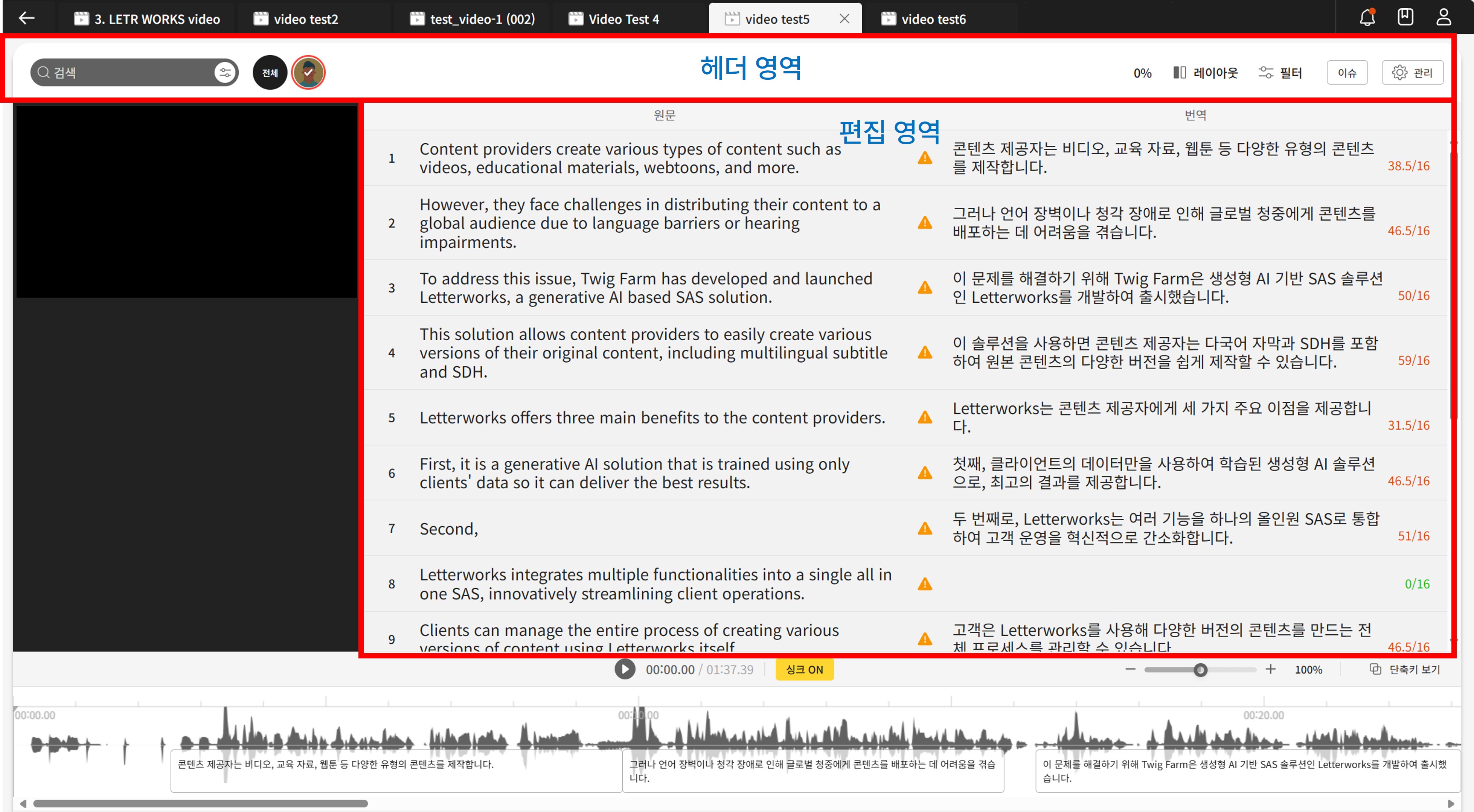 또한 화면을 보다 넓게 활용하실 수 있도록 편집 화면과 비편집 화면 크기를 조절하고, 각 구성 요소들을 깔끔하게 재배치 하였으며, 변경 사항은 영상, 이미지, 텍스트 프로젝트 전체 편집 화면에서 적용됩니다.