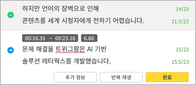 시간대 별로 정확히 일치하는 번역 문장만 대체할 수 있는 기능을 추가하였습니다.