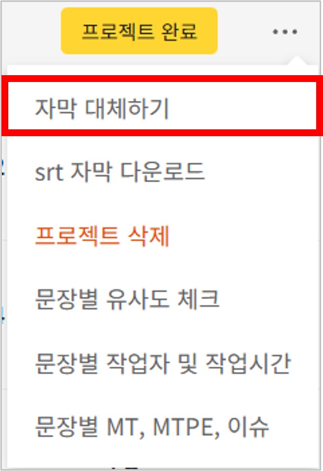 1) 단어장(TB) 적용 오류 개선 : 기존에 ‘자막 대체하기’ 기능을 사용할 때, 프로젝트 생성 시 설정한 단어장이 적용되지 않던 현상을 수정하였습니다. 이제 자막을 대체하더라도 기존에 적용된 단어장 정보를 기반으로 정확한 결과값이 출력됩니다.